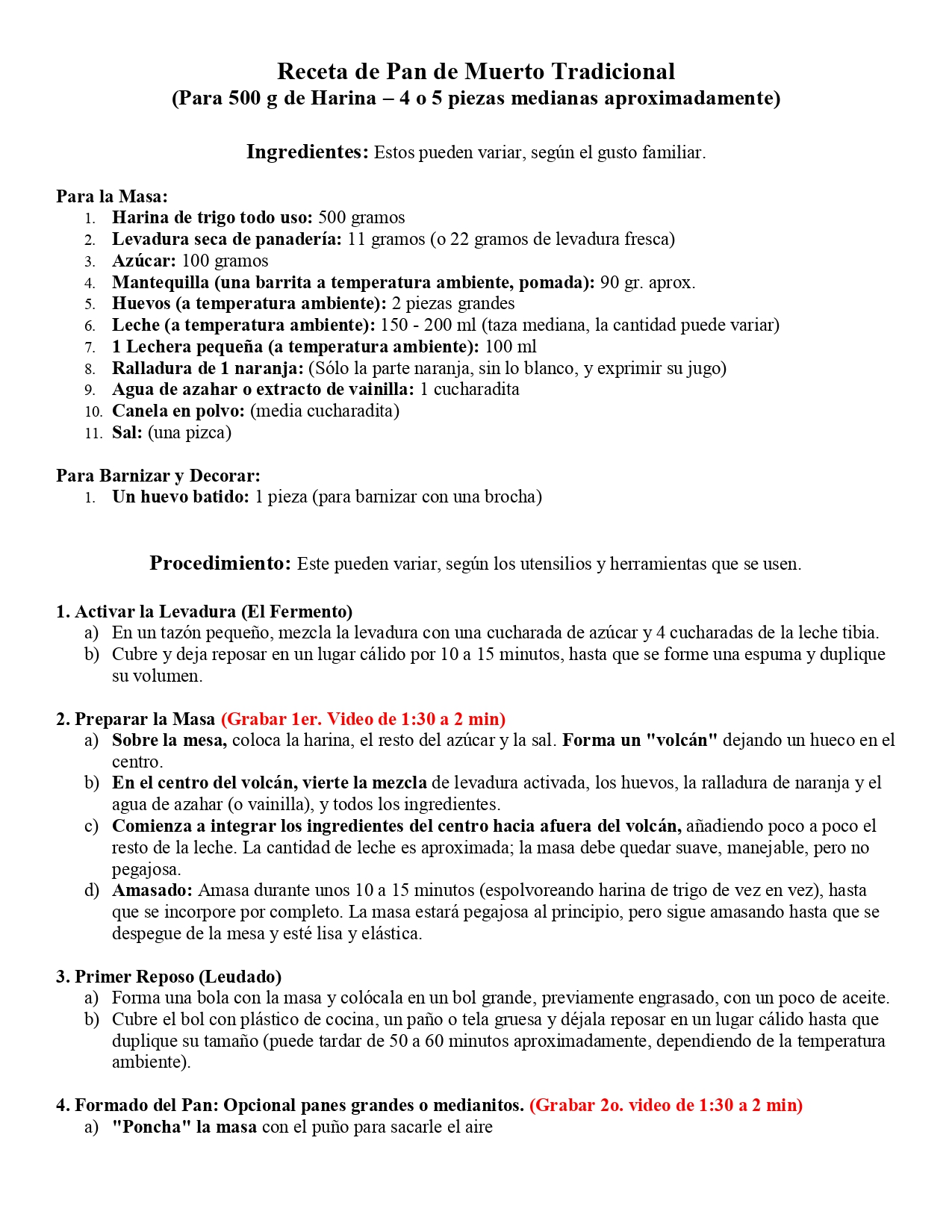 Pan de muerto: Ingredientes y procedimiento de elaboración