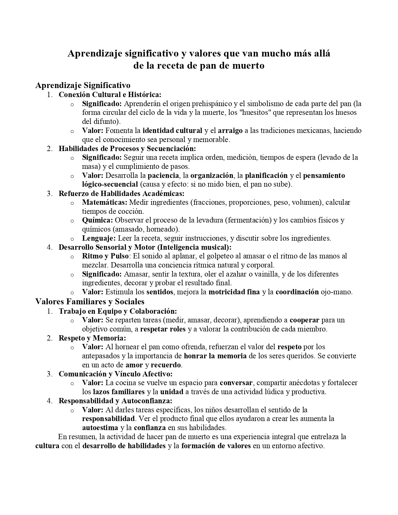Aprendizaje significativo y valores que van mucho más allá de la receta de pan de muerto